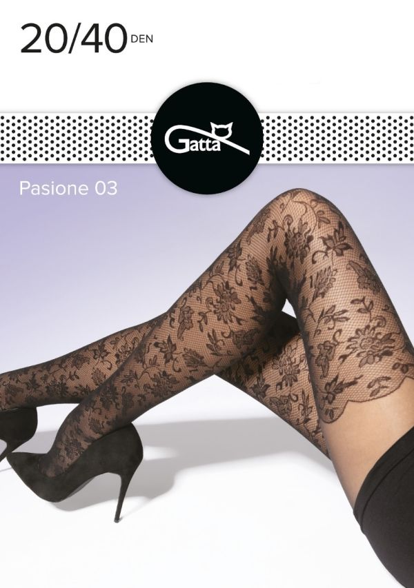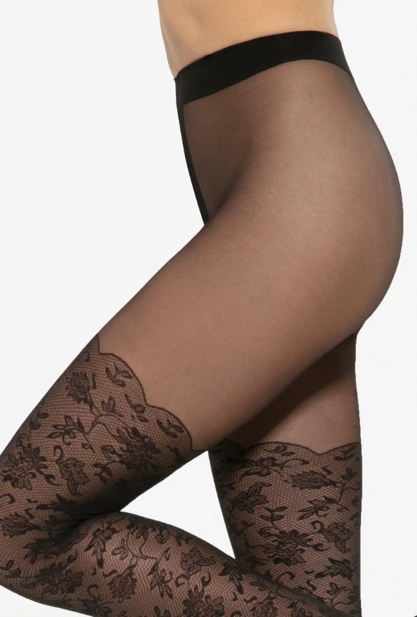 Schwarze Strumpfhose im Overknee-Look mit Muster. 20/40 DEN
