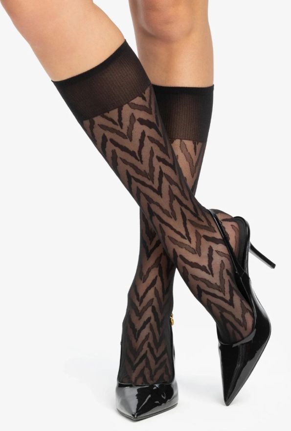 Schwarze Kniestrümpfe mit Muster. 20 DEN