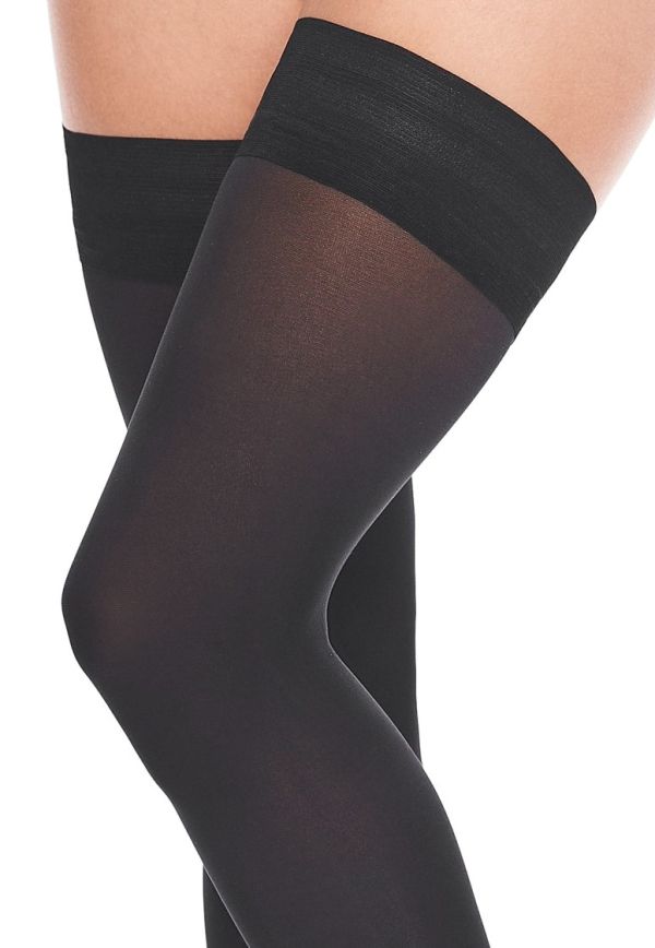 Schwarze halterlose Strümpfe mit einem elastischen Gummiband (mit Silikon). 50 DEN