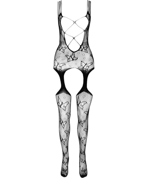 Sexy Bodystocking mit Schmetterlingmuster, brustfrei und mit Trägern.